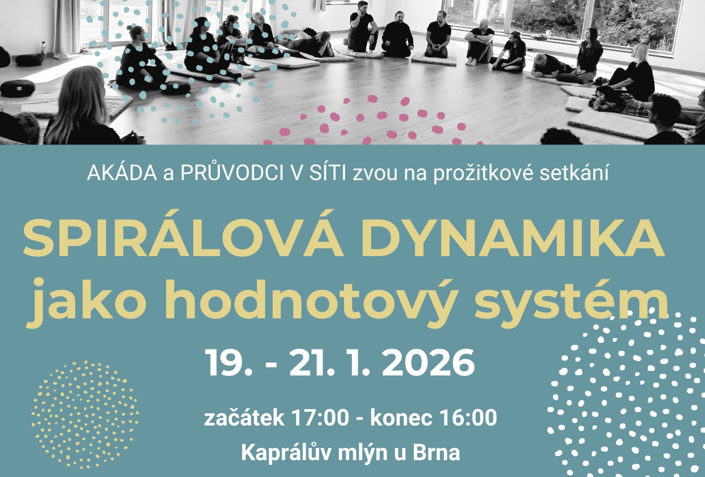 Lednové setkání Průvodců v síti tentokrát otevíráme i pro další zájemce, tvůrčí hybatele změn v regionu. Žijete a tvoříte v Jihomoravském, Pardubickém nebo Královéhradeckém kraji? Rádi rozvíjíte svůj potenciál? Souzníte s naším mottem: Region jako učící se, zdravý ekosystém? Pak by setkání Spirálová dynamika jako hodnotový systém mohlo být pro vás. Více informací a přihlášení TUDY.